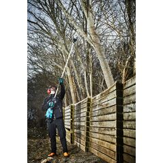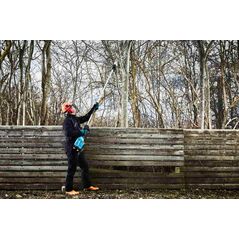 Längere Laufzeit pro Akku-Ladung sowie höhere Lebensdauer durch bürstenlose Motor-Technologie|Bis zu 55 Schnitte (Ø: 100 mm) pro Akkuladung (5 Ah)|Rückschlagreduzierung und Motobremse (Kettenstopp in < 1S) für sicheres Arbeiten|Dual-Switch Sicherheits-Gasgebeschalter zum Schutz vor unbeabsichtigtem Einschalten und einfacher Dosierung der Kettengeschwindigkeit|Metall-Anschlagkralle für einen sicheren Ansatz und lange Haltbarkeit|Optimierte Ergonomie durch ausbalancierte Bauweise und großflächige|Gummierungen für sicheren Griff und ermüdungsarmes Arbeiten|Ovales Aluminium-Konstruktion für geringes Gewicht und hohe Haltbarkeit|2 Meter Arbeitslänge (3 Meter mit Verlängerung, steckbar)|Selbstölendes Ketten-Schwert und werkzeuglose Kettenspannung für einfachen Betrieb