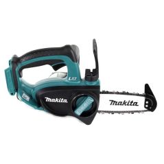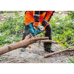Die handliche Akku Kettensäge DUR 122 von Makita überzeugt mit kraftvollem Motor für hohe Kettengeschwindigkeit und kompaktem Gehäuse, wodurch das Arbeiten an schwer zugänglichen Orten erleichtert wird. Die Säge verfügt über automatische Kettenschmierung, die Sicherheit wird durch eine Motorbremse gewährleistet, ein Sägekettenstopp erfolgt innerhalb von 0,5 Sekunden. Das Handling wird durch die im Handgriff eingelegten Gummipolster maximiert, das Einstellen der Kettenspannung und der Sägekettenwechsel erfolgen werkzeuglos.
