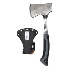 Feste Verbindung zwischen Stiel und Axtkopf dank Ringkeil mit Widerhaken, Sicherungsplatte und -schraube, Für ein sicheres Arbeiten in Wald und Garten