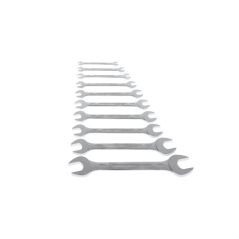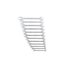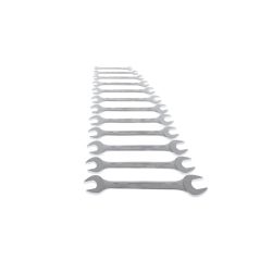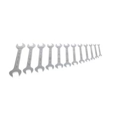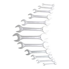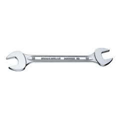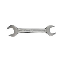 HOCHWERTIGE VERARBEITUNG: Der matt-satiniert verchromte Doppelmaulschlüssel ist blendfrei und liegt gut in der Hand. Auch bei öligen Händen bietet er einen sicheren Griff.