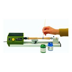 Drechselmaschine DM1100T Scheppach - Werkstücke bis 1000mm | 4 Geschwindigkeiten | inkl. Zubehörset B-Ware Werkstücke mit 1000 mm Länge und 350 mm Durchmesser können auf der Drechselmaschine DM1100T von scheppach bearbeitet werden. Für das vibrationsfreie Drechseln sorgt ein laufruhiger 400 W Induktionsmotor mit 4 Geschwindigkeitsstufen für unterschiedliche Materialanforderungen. Dank 20 kg Eigengewicht hat die Drechselbank mit dem massiven Stahlbett einen stabilen Stand. Kompakte und transportable Drechselmaschine mit massivem Stahlbett Laufruhiger 400 W Induktionsmotor mit 4 Geschwindigkeitsstufen Leerlaufdrehzahlen 890 / 1260 / 1760 / 2600 min-1 Spindelstock mit M18-Gewinde inkl. 4-Zack-Körnerspitze Höhe des Bettes 175 mm Stabiler Stand dank 20 kg Gewicht für vibrationsarmes Arbeiten Werkzeugauflage mit justierbarer Auflagefläche Max. Werkstückmaße 350 x 1000 mmDie scheppach DM1100T Drechselbank eignet sich dank ihrer kompakten Größe perfekt für die heimische Hobbywerkstatt. Holz und weiche Materialien lassen sich mit der DM1100T mühelos bearbeiten. Dadurch ist die Drechselmaschine ideal auf die Anforderungen von Modellbauern und Hobbyheimwerkern abgestimmt.Zwischen dem Spindelstock mit M18-Gewinde und 4-Zack-Körnerspitze und dem Reitstock können Werkstücke mit 1000 mm Länge und einem Durchmesser von 350 mm fixiert werden. So können problemlos auch größere Werkstücke bearbeitet werden. Mithilfe der verstellbaren Werkzeugauflage ist ein kraftvolles Anlegen des Werkzeuges an das Werkstück möglich. Dadurch wird nicht nur die Werkzeugführung ruhiger, sondern auch das Ergebnis schöner.Die Drechselmaschine lässt sich problemlos transportieren, dadurch kann sie flexibel eingesetzt werden. Für einen besonders stabilen Stand und vibrationsarmes Arbeiten sorgt das Gewicht von 20 kg und ein massives Stahlbett.Der laufruhige 400 W Induktionsmotor mit 4 Geschwindigkeitsstufen liefert ausreichend Leistung. Die hohe Laufruhe trägt zusätzlich zu einem schöneren Ergebnis bei.Dank der einstellbaren Spindeldrehzahl (890 / 1260 / 1760 / 2600 min-1) lässt sich die Drechselgeschwindigkeit perfekt an das Material des Drechselguts anpassen und sorgt so jederzeit für ideale Ergebnisse.Im Lieferumfang sind außerdem 1 Planscheibe, 2 Drechselbeitel (1x gerade, 1x hohl) sowie ein Montageset zur Befestigung an der Werkbank enthalten. Zusätzlich ist weiteres Drechselwerkzeug separat erhältlich.