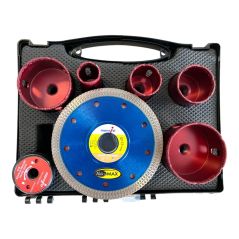 Das Marcrist Fliesenschneid- und Bohrset ist die perfekte Lösung für alle Arbeiten rund um das Bearbeiten von Fliesen. Das Set umfasst Fliesenbohrer und eine Fliesentrennscheibe, die vielseitig einsetzbar sind. Die hochwertigen Bohrer sind geeignet für alle Fliesen in jeder Stärke, Granit, Naturstein und Mosaik. Sie sind selbstkühlend, selbstschärfend und verblüffend schnell. Diese Bohrer passen zu jedem handelsüblichen Winkelschleifer und sind ein unverzichtbares Werkzeug für jeden Heimwerker oder Profi. Die Fliesentrennscheibe überzeugt mit ihrer ultradünnen Schnittkante, die nicht nur für präzise Schnitte sorgt, sondern auch dafür, dass Akku und Maschine geschont werden. Dank der X-Verzahnung werden Ausrisse auf ein Minimum reduziert, so dass ein sauberes Ergebnis erzielt wird. Die Trennscheibe ist sowohl für Akku- als auch kabelgebundene Winkelschleifer geeignet und macht das Bearbeiten von Fliesen zum Kinderspiel.