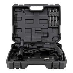 Bohrhammer mit SDS plus GBH 2-28 Professional. Stärkste Leistung im Bosch SDS plus-2-kg-Bohrhammer-Segment. Liefert eine Schlagenergie von 3,2 Joule und sorgt für schnellen Bohrfortschritt. Erhöhter Anwenderschutz durch KickBack Control. Vibration Control für müheloses Arbeiten bei andauernden und zeitintensiven Anwendungen. Magnesium Getriebegehäuse für verbesserte Robustheit. Kugeltülle zum Vorbeugen von Kabelbrüchen. Drehbare Bürstenplatte für gleiche Kraft im Rechts- und Linkslauf. Überlastkupplung zum Schutz von Anwender und Maschine. Rechts-/Linkslauf zum Lösen bei verklemmten Bohrern. Stufenlose Drehzahlregelung zum sauberen Anbohren. Feststellknopf für kontinuierliches und ermüdungsfreies Arbeiten. Zusatzhandgriff (2 602 025 141), Handwerkerkoffer, Tiefenanschlag 210 mm (1 613 001 010), Maschinentuch.