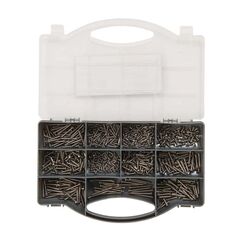Selbstschneidende PZ-Senkkopfschrauben aus A2-Edelstahl. Für diverse Anwendungen in Haushalt, Werkstatt und Garage. Sortierte Größen: 3/8 Zoll x 4, 1/2 Zoll x 4, 3/4 Zoll x 4, 1/2 Zoll x 6, 5/8 Zoll x 6, 3/4 Zoll x 6, 1 Zoll x 6, 1 1/4 Zoll x 6, 1 Zoll x 8, 1 1/4 Zoll x 8, 1 1/2 Zoll x 8. Lieferung im praktischen Fächerkasten.