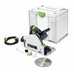 Die Festool Tauchsäge TS 60 K ist ideal für präzise Tauchschnitte bei einer Materialstärke von bis zu 60 mm und eignet sich so perfekt für das Ablängen von Innentüren, das Zuschneiden von Plattenmaterial, zum Herstellen von Dehnungsfugen in Parkettböden und Schattenfugen sowie das Zusägen und Bearbeiten von Gipsfaserplatten. Dank der erhöhten Schnitttiefe auf 60 mm, können mit Ihr auch Werkstoffplatten bis zu einer maximalen Dicke von 45 mm auf Gehrung ( 45° ) geschnitten werden. Zusätzlich neu ist der einzigartige KickbackStop. Dieser vermindert die Verletzungsgefahr durch einen Rückschlag beim Sägen oder beim Eintauchen in das Werkstück. Mit dem transparenten und verschiebbaren Sichtfenster haben Sie stets gute Sicht auf Anriss und Sägeblatt. Die neuverbaute Regelelektronik ermöglicht die Drehzahlregelung für Temperaturüberwachung, Schnellbremse und gewährleistet so eine optimale Anpassung an den Werkstoff. Dank des FastFix Spindelstopp ist der Sägeblattwechsel ganz einfach. Mit wenigen Handgriffen ist das richtige Sägeblatt montiert und die passende Drehzahleinstellung für materialgerechtes Sägen vorgenommen, wodurch immer materialgerecht arbeiten garantiert ist. Das flache Gehäuse bietet beim Arbeiten höchste Flexibilität bei einer Winkeleinstellung mit Hinterschnitt-Funktion von -1 bis 47°. Der neue Systainer SYS3 M 337 mit bewährter Grundfläche ist die Säge mit Zubehör sicher und mobil gelagert - jetzt auch mit Kompatibilität zum bott vario3 Fahrzeugeinrichtung. Festool ist Premium Werkzeughersteller der sich vor allem durch seine ausgeklügelten Systeme und seine hohe Verarbeitungsqualität auszeichnet.