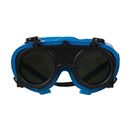 Transparente Polykarbonat-Sicherheitsgläser mit flexiblem, weichem Rahmen und elastischem Kopfband. Grün getönte, hochklappbare Nr.5-Schutzscheiben erlauben einfache Wechsel zwischen Schweiß- und Zerspanungsarbeiten. Indirekte Belüftung. Verwendbar beim Gasschweißen und Plasmaschneiden. EN 175:1997.