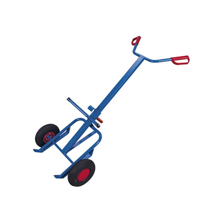 Eigenschaften: Fest verschweißte Stahlkonstruktion aus Stahl- und Rechteckrohr 2 angeschweißte AufnahmeklauenInkl Fassrandgreifer am Mittelholm stufenlosHöhenverstellbar 2 Kunststoff-SicherheitshandgriffeGeeignet für den Transport von 200 Ltr. Stahlblechfässern mit RandFarbe: RAL 5010 enzianblau pulverbeschichtetRadsatz: Luftbereifung auf Stahlfelge mit Präzisions-Rillenkugellager, schwarz, Ø 260 x 85 mmTraglast: 250 kg