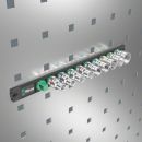Nuss-Magnetleiste mit 9 Hand- und Maschinensteckschlüssel-Einsätzen (non-impact), 1/2". Ein leichtgängiger Drehmechanismus sorgt für einen sicheren Halt und leichte Entnahme der Nüsse. Mit Take it easy Werkzeugfinder mit Farbkennzeichnung nach Größen - zum einfachen und schnellen Finden des benötigten Werkzeugs. Die Magnetleiste ermöglicht die temporäre Anbringung an metallischen Oberflächen und verfügt dank der Twist to unlock Funktion über eine sichere Nussverriegelung und -entriegelung.