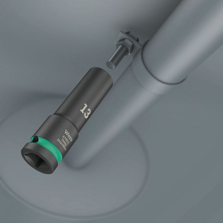 Langer Impaktor-Steckschlüsseleinsatz für den Einsatz mit Elektro- oder Druckluft-Schlagschraubern mit 12,5 mm = 1/2" Antrieb. Für den Einsatz auch bei tiefliegenden Verschraubungen und überstehenden Gewindestangen. Die Impaktor-Technologie sorgt für überdurchschnittliche Standzeiten auch bei extremen Anforderungen. Mit Take it easy Werkzeugfinder mit Farbkennzeichnung nach Größen - zum einfachen und schnellen Finden des benötigten Werkzeugs. Mit Sechskantprofil und Nut mit Bohrung. Das Sechskantprofil ermöglicht die Übertragung hoher Kräfte und belastet die Kanten der Schraubenmutter bzw. des Schraubenkopfes weniger als ein Zwölfkantprofil. Für Außensechskantschrauben und -muttern.