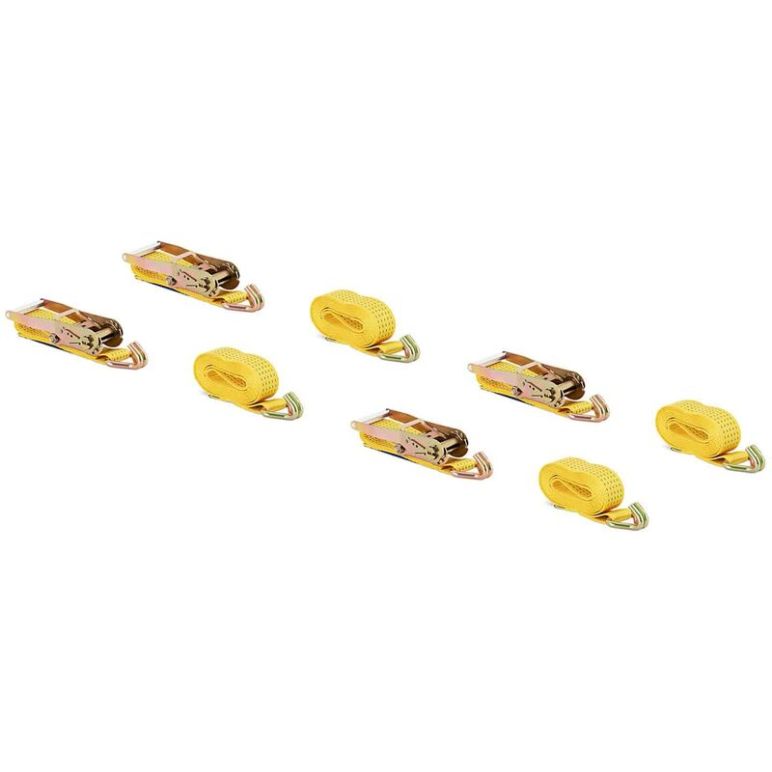 Kein Wackeln, kein Rutschen – dank mit 2500 daN belastbarer Spanngurte mit Ratsche Mit den hochwertigen Spanngurten mit Ratsche von MSW sichern Sie zuverlässig Transportgut, beispielsweise auf Anhängern oder Trägersystemen für das Autodach. So gibt es in diesem Set 4 Spanngurte, die Sie dank Schnellspanner mit wenig Kraftaufwand festziehen, aber auch wieder öffnen können. Mit dem vielseitigen Kfz-Zubehör sichern Sie verschiedene Lasten während des Transports, seien es Stangen für Gerüste, Holzbalken oder sperrige Gegenstände, die fixiert werden müssen. Das Set besteht aus 4 Spanngurten mit Ratsche. Mit einer Länge von 4 m (3,5 m Losende + 0,5 m Festende) und einer Breite von 5 cm lässt sich jeder Spanngurt mühelos um verschiedenes Transportgut spannen. Mithilfe der A-förmigen Haken können Sie die Enden der Gurte auf gelochten Ladeflächen sicher befestigen. Ist die optimale Position erstmal gefunden, kann der Gurt mit der Ratsche angezogen werden. Jeder der 4 Ratschengurte ist aus 100