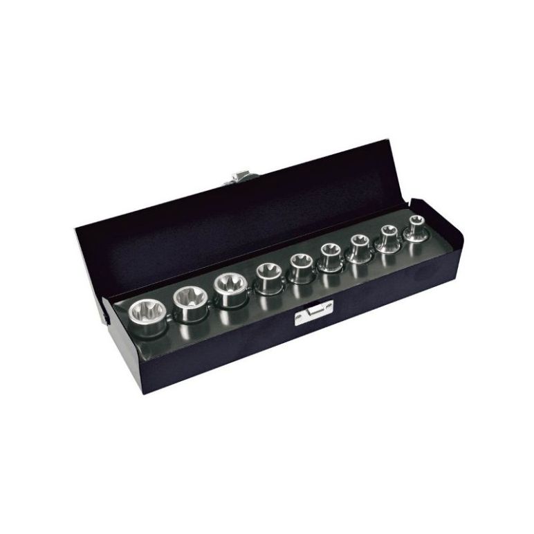 Hochwertige Stecknüsse mit Innensechsrund für den täglichen Einsatz Stecknüsse-Innensechsrund in qualitativ hochwertigster Ausführung, für lange Lebensdauer im täglichen Einsatz mit einer Metallkassette geliefert. Die Innensechsrund Stecknüsse sind matt beschichtet u. Oberflächen Glanz poliert. Härte und Drehmoment der Stecknüsse entsprechen den Forderungen der jeweiligen DIN - Vorschriften (DIN 3113A) Besonderheiten auf einen Blick: Menge: 9-tlg. Antrieb: 1/2 Zoll Torx-Kompatibel: E10, E11, E12, E14, E16, E18, E20, E22, E24 TÜV Rheinland Material: Chrom-Vanadium-Stahl Qualität: Industriequalität 25 Jahre Herstellergarantie Garantieinformation