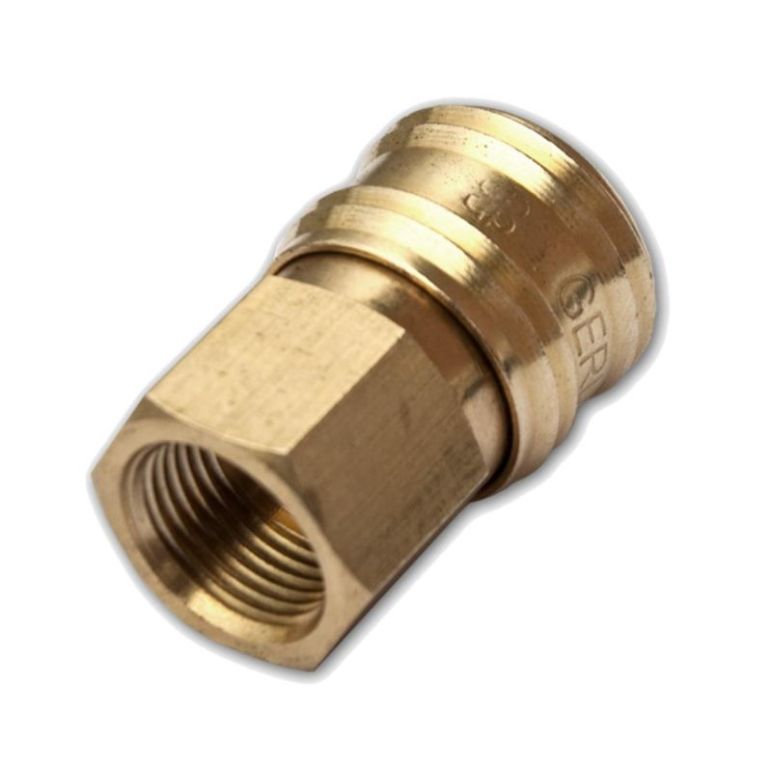"Druckluftkupplung mit Innengewinde in verschiedenen Zollgrößen Material: Messing Dichtung: NBR (Nitrilkautschuk) Anschluss: Innengewinde Nennweite: 7,2mm Betriebsdruck: max. 35 bar Temperaturbereich: -20°C bis +100°C spezielles Hülsendesign verhindert das verschmutzen am Ventilkörper massive Bauweise universell einsetzbar standard Druckluftkupplung Größen: 1/2"", 3/8"", 1/4""   Anschluss Größe (kg) 1/4"" Innengewinde 0,075 3/8"" Innengewinde 0,070 1/2"" Innengewinde 0,075"