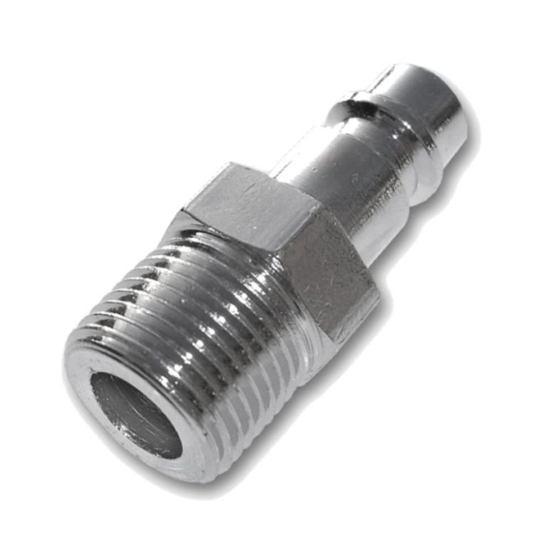 "Druckluftkupplung mit Außengewinde in verschiedenen Zoll-Größen Druckluftkupplung Außengewinde mit Stecknippel Material: Stahl verchromt Anschluss: Außengewinde Nennweite: 7,2mm Betriebsdruck: max. 35 bar Temperaturbereich: -20°C bis +100°C massive Bauweise universell einsetzbar standard Druckluftkupplung Größen/Innendurchmesser: 1/2"", 3/8"", 1/4""   Anschluss Gewicht (kg) 1/2""  Innendurchmesser Außengewinde mit Stecknippel 0,030 3/8""  Innendurchmesser Außengewinde mit Stecknippel 0,025 1/4""  Innendurchmesser Außengewinde mit Stecknippel 0,020"