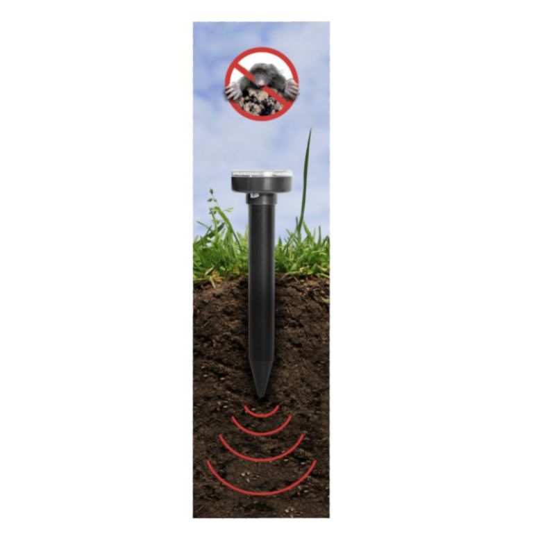 Ultraschall Maulwurfschreck 24,5cm mit runden Kopf und Solar   stößt Maulwürfe, Mäuse, Ratten, Wühlmäuse, Spitzmäuse und Schlangen effektiv ab der Repeller gibt Vibrationen und Geräusche mit variabler Frequenz von 400 - 1000 Hz ab der Schall wird in Intervallen von 17 Sekunden abgegeben Betriebsreichweite innerhalb von 15 m schadet Haustieren nicht eingebaute Solarbatterie (Laden nur im EIN-Modus) EIN / AUS-Schalter einfache und schnelle Installation Maße: Länge: 24,5cm Breite: 6cm