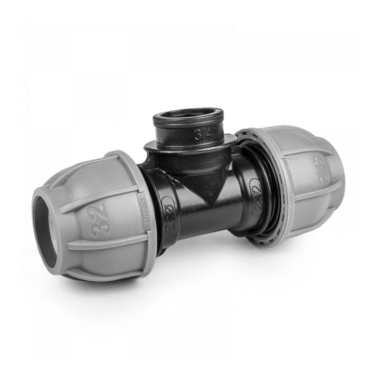 "T-Stück Schlauchverbinder für PE-Rohre (Verlegrohr) mit Innengewinde Technische Merkmale: Material: Polypropylen (PP) Geeignet für PE Rohre (Verlegrohr) T-Stück Innengewinde: 6/4"", 5/4"", 1/2"", 3/4"", 1"" Nenndruck: PN10 Farbe: schwarz/grau Größen: 20-50 mm"