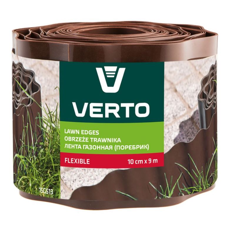 Verto Rasenkante in Grün Die ideale Beeteinfassung für Rasenflächen, Gemüse- oder Blumenbeete. Das gewellte Material aus witterungsbeständigem und schlagfesten Kunststoff ist äußert stabil. Sorgt für saubere Beetkanten und kein Schmutz auf den Wegen. Technische Merkmale: Aus flexiblem Kunststoff Farbe: Grün und Braun Größen: 10 cm x 9 m, 15 cm x 9 m, 20 cm x 9 m