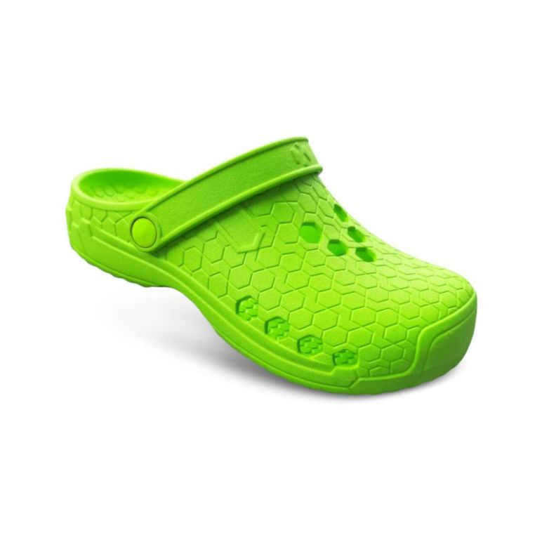 "Clogs ""Hex Clap"" aus weichem EVA für Damen und Herren - von TAMS® X Drywalker® Die Clogs ""Hex Clap"" eignen sind die perfekten Begleiter im Garten, Zuhause oder bei Wasseraktivitäten. Sie wurden aus hochwertigem EVA-Schaumstoff hergestellt. Dieses Material sorgt dafür, dass die Schuhe superleicht und bequem sind. Sie verfügen über einen beweglichen Riemen, sodass Sie selbst entscheiden können, wie Sie die Schuhe tragen. Die Löcher sorgen für eine optimale Luftzirkulation sodass schwitzen vermieden wird. Dank der großen Auswahl an Größen sind die Schuhe unisex und somit für Damen und Herren konzipiert. Besonderheiten: Wasserdicht Unisex Sehr Leicht Modernes Design Mit Belüftungslöchern Mit beweglichem Riemen Material: EVA-Schaumstoff Farbe: Grün oder Blau (weitere Farben in Planung) Verfügbar in Größe 36-48 Hinweis : Die Schuhe fallen kleiner aus. Wir empfehlen Ihnen eine Nummer größer zu wählen."