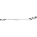 Joker Maulringratschenschlüssel mit abgewinkelter Ratschenseite und Umschalthebel. Mit Haltefunktion durch Metallplatte im Maul, die die Gefahr des Verlierens von Schrauben und Muttern reduziert. Der integrierte Endanschlag kann das Abrutschen vom Schraubenkopf nach unten verhindern und ermöglicht das Aufbringen hoher Drehmomente. Die auswechselbare Metallplatte im Maul sichert mit extra harten Zähnen Schrauben und Muttern und verringert die Abrutschgefahr. Die Doppelsechskantgeometrie sorgt für die formschlüssige Verbindung mit Schraube oder Mutter und damit ebenso für die Verringerung der Abrutschgefahr. Der geringe Rückschwenkwinkel von nur 30° auf der Maulseite vermeidet zeitintensives Wenden des Schlüssels beim Schrauben. Die umschaltbare Ratschenmechanik auf der Ringseite mit hoher Feinverzahnung (80 Zähne) sorgt für hohe Flexibilität auch in engen Bauräumen. Hörbar präzise Ratschenmechanik. Das robuste zweiteilige Rast-Element ermöglicht darüber hinaus eine extreme Standfestigkeit. Mit um 15° abgewinkelter Ratschenseite für sicheres Arbeiten bei hohen Drehmomenten. Die spezielle Schmiedegeometrie sorgt für hohe Drehmomentübertragung und hohe Biegesteifigkeit. Gefertigt aus leistungsfähigem Chrom-Molybdän-Stahl mit Nickel-Chrom Beschichtung für hohen Korrosionsschutz. Mit Werkzeugfinder "Take it easy": Farbkennzeichnung nach Größen.