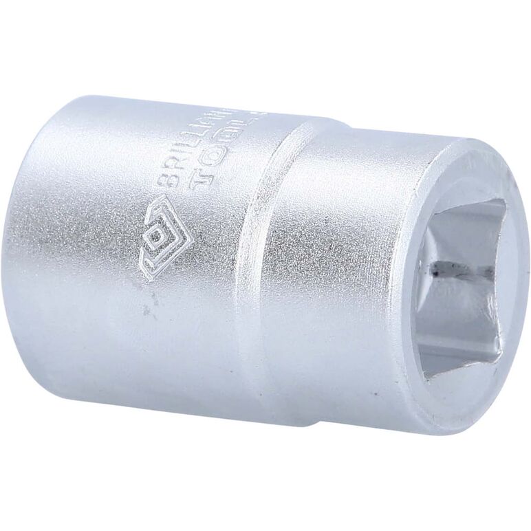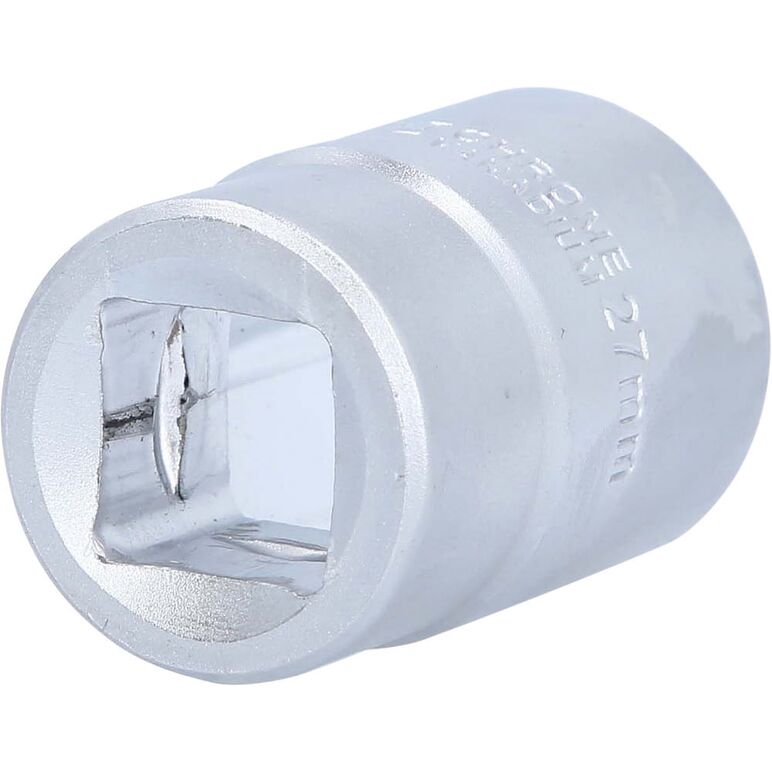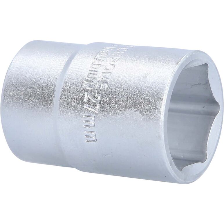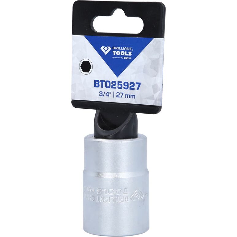 Die BRILLIANT TOOLS Sechskant-Stecknuss BT025927 ist nach DIN 3124 gefertigt. Der kurze metrische Einsatz hat einen 3/4" (20 mm) Innenvierkant-Antrieb, welcher nach DIN 3120 gefertigt wurde. Die Schlüsselweite des Sechskants ist 27 mm. Die Stecknuss hat eine Gesamtlänge von 50 mm. Die Oberfläche ist matt verchromt.
