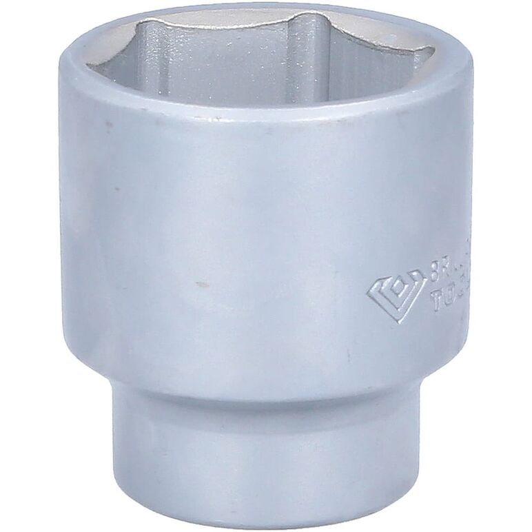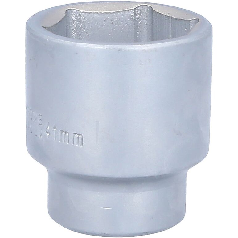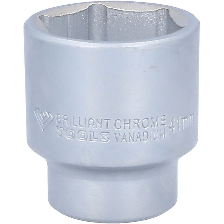 Die BRILLIANT TOOLS Sechskant-Stecknuss BT025941 ist nach DIN 3124 gefertigt. Der kurze metrische Einsatz hat einen 3/4" (20 mm) Innenvierkant-Antrieb, welcher nach DIN 3120 gefertigt wurde. Die Schlüsselweite des Sechskants ist 41 mm. Die Stecknuss hat eine Gesamtlänge von 58 mm. Die Oberfläche ist matt verchromt.