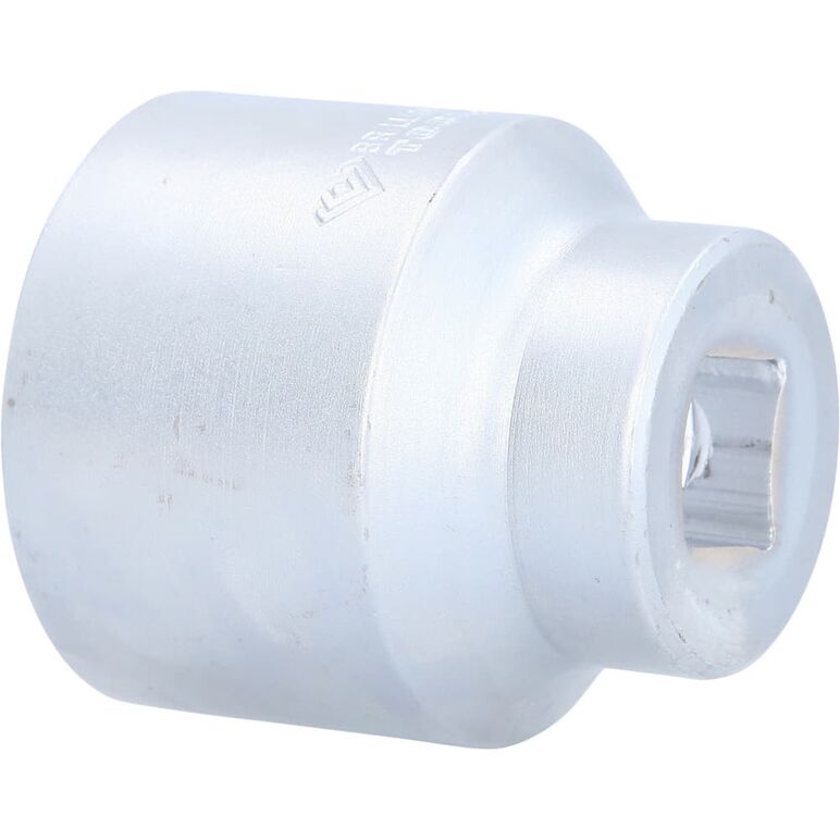 Die BRILLIANT TOOLS Sechskant-Stecknuss BT025950 ist nach DIN 3124 gefertigt. Der kurze metrische Einsatz hat einen 3/4" (20 mm) Innenvierkant-Antrieb, welcher nach DIN 3120 gefertigt wurde. Die Schlüsselweite des Sechskants ist 50 mm. Die Stecknuss hat eine Gesamtlänge von 67 mm. Die Oberfläche ist matt verchromt.