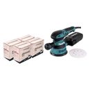 Der Makita Exzenterschleifer besticht durch seine leichte Bauweise und der elektronischen Drehzahlvorwahl. Mit den zu verzeichnenden 300 Watt Leistung und der Leerlaufdrehzahl ist ein hoher Abtrag am Werkstück garantiert. Dank des Bremsrings ist ein sanfter Anlauf des Schleiftellers gewährleistet. Durch den Staubsack und der integrierten Staubabsaugung ist ein staubreduziertes Arbeiten möglich. Das um 300 Grad drehbare Griffstück bietet ein Maximum an Arbeitskomfort. Ob Polierarbeiten oder Schleifarbeiten der Exzenterschleifer von Makita ist ein treuer Begleiter.