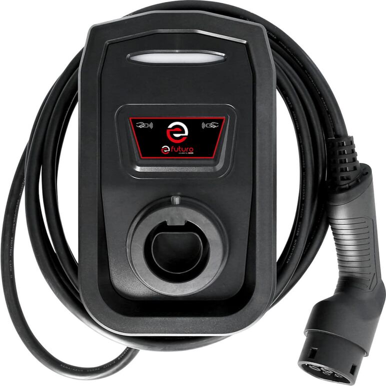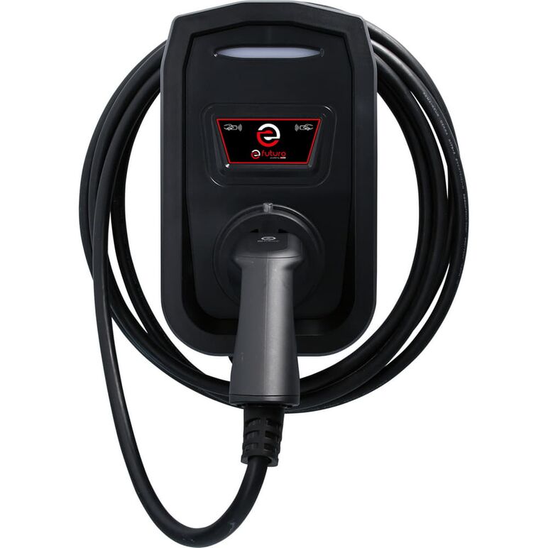 Die efuturo Wallbox zeichnet sich durch ihre kompakte Bauweise als platzsparende Ladestation für Elektro- und Hybridfahrzeuge aus. Durch die integrierte LED-Anzeige ist die Wallbox einfach zu bedienen und liefert auf einen Blick Informationen über den Ladestatus oder mögliche Fehlermeldungen. Abgesichert ist die Wallbox über einen RCD Typ B Fehlerstromschutz-Schalter und erfüllt hiermit höchste Sicherheitsstandards. Das hochwertige Kunststoffgehäuse eignet sich für einen sicheren Betrieb der efuturo Wallbox im Außenbereich. Der ergonomisch geformte Typ 2 Ladestecker, und das hochwertige und langlebige Kabel mit 5 Meter Aktionsradius verbindet die Wallbox schnell und unkompliziert mit Ihrem Elektro- oder Hybridfahrzeug. Der integrierte RFID Kartenleser ermöglicht Ihnen die Nutzung der Wallbox durch Unbefugte zu verhindern. Halten Sie einfach die mitgelieferte RFID Karte an die Wallbox. Der Ladevorgang wird erst nach dieser Authentifizierung freigeschaltet, die Wallbox beginnt die Kommunikation mit dem Fahrzeug. Über den eingebauten Stromzähler lässt sich der Stromverbrauch ablesen. Hiermit können Sie Ihren Stromverbrauch beobachten. Vermieter können über den MID geeichten Stromzähler den Verbrauch des Ladestroms mit Ihren Mietern abrechnen. Sollten Sie die Wallbox einmal nicht verwenden, können Sie den Typ 2 Stecker in der dafür vorgesehenen Halterung aufgeräumt unterbringen, um Beschädigungen des Steckers durch Überfahren o.ä. zu vermeiden. Verwandeln Sie Ihre Garage oder Ihren Kundenparkplatz in Ihre persönliche Tankstelle für Ihr Elektro- und Hybridfahrzeuge mit der efuturo Wallbox. Die optional erhältliche Standsäule bringt Ihre Wallbox zusätzlich zur Geltung. Mit der efuturo Wallbox ist es möglich die Ladezeit bedeutend zu reduzieren. Während der Ladezyklus für einen Renault Zoe an einer Haushaltssteckdose (2,3 kW) ca. 25 Stunden benötigt sind es bei einer 3,7 kW Wallbox noch ca. 16 Stunden und bei 11 kW lediglich 4,5 Stunden. Bis zu 10-Mal schneller geht es mit einer 22 kW Wallbox, die Ladezeit verkürzt sich auf ca. 2,5 Stunden. Zu beachten ist hierbei, dass unsere haushaltsüblichen Steckdosen für die Strommengen zum Laden von Elektro- und Hybridfahrzeugen nicht ausgelegt sind. Zwar ist es möglich Fahrzeuge an Steckdosen zu laden, dies sollte allerdings nur als Notlösung betrachtet werden. Der einfache Aufbau der efuturo Wallbox erspart Ihnen eine böse Überraschung bei der Rechnung Ihres Elektrikers. Die verbauten Komponenten sind Ihrem Elektriker bestens bekannt. Der extrem teure RCD Typ B Fehlerstrom-Schutzschalter ist bereits in der efuturo Wallbox integriert. Dies garantiert Ihnen die höchste Sicherheit und der Schutzschalter muss nicht zusätzlich im externen Schaltschrank vom Fachmann installiert werden.