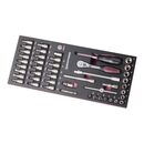 • Werkzeug-Schaumstoff-Einlage mit 1/4 Zoll Stecknüssen, Zubehör und Bit-Stecknüssen sowie einer ergokraft Umschaltknarre