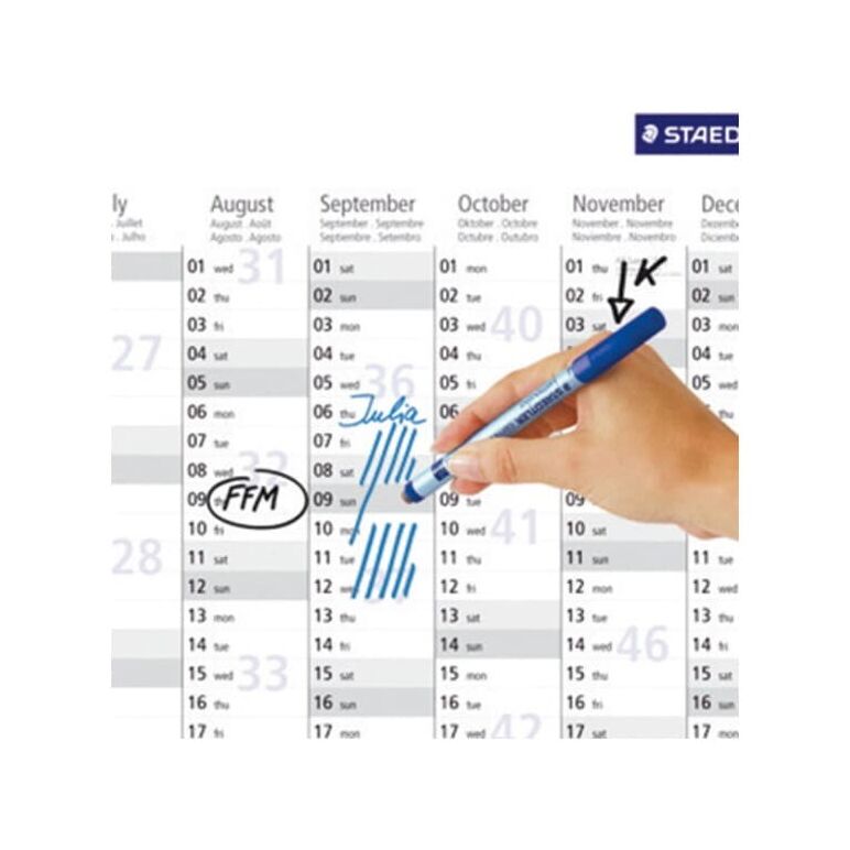 Der neue Lumocolor correctable® ist nur auf glatten Oberflächen abwischbar und ideal für alle in Schule und Ausbildung verwendeten Folien, wie Schreibfolien, Sichthüllen, Laminate und Schülertafeln. Mit Hilfe des Wischers lassen sich Fehler jederzeit trocken und sauber korrigieren. Kappe mit Abrollsicherung.