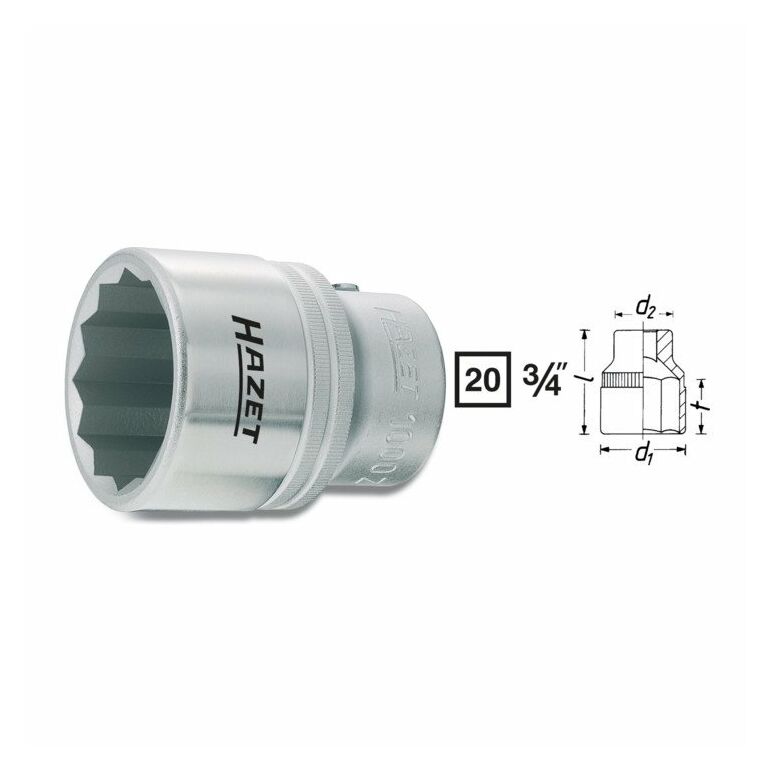 HAZET Doppel-6-Kant-Steckschlüssel-Einsatz 1000Z-34 s: 34 mm Vierkant hohl 20 mm (3/4")