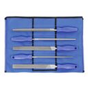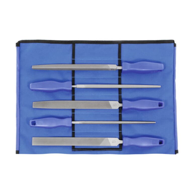 • 5-teiliger Feilensatz mit je einer Flach-, Dreikant-, Vierkant-, Halbrund- und Rundfeile.