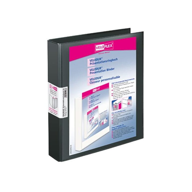 Präsentationsringbuch velodur® 46mm din A4 4 Ringe D-Mechanik Pappe schwarz