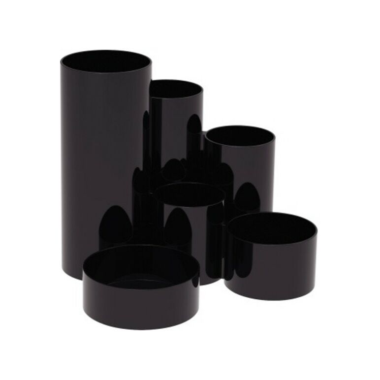 Verschiedene Köchergrößen bieten Platz für Kleinteile wie Büroklammern oder Pins, aber auch Schreibgeräte, Radiergummi, Klebstoff etc. Mit Hochglanzoberfläche. Besonders standfest konstruiert.