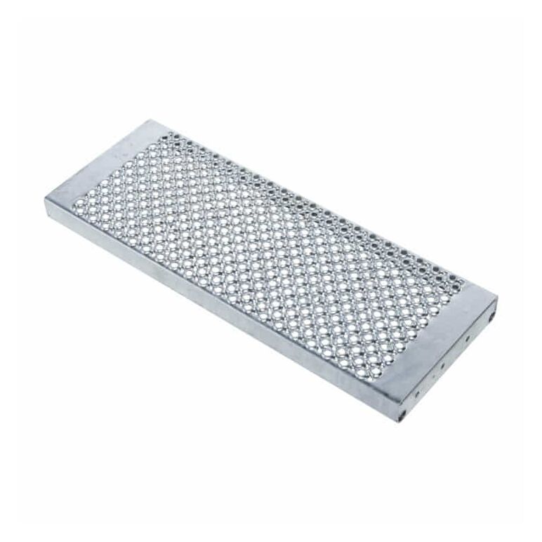 - Wahlweise auch als Stahl-Gitterrost (R12) und Stahl-Lochblech (R13) für bessere Rutschfestigkeit erhältlich