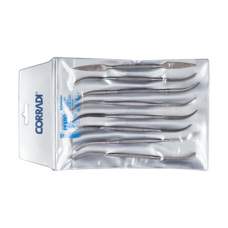 CORRADI-Riffelfeilen-Set, 8-teilig, Schweizer Hieb 2, 180mm, 19506254 – Für die mittelfeile Präzisionsbearbeitung schwer zugänglicher Stellen geeignet