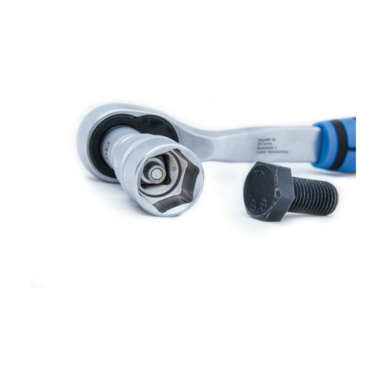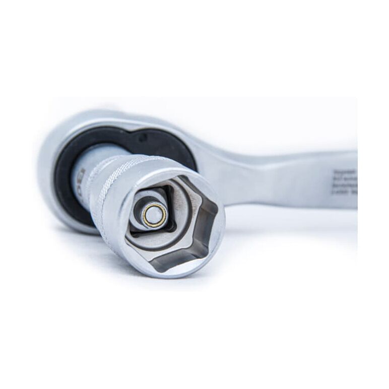 • ein starker Magnet hält Schrauben und Muttern nach dem Lösen im Steckschlüssel-Einsatz fest