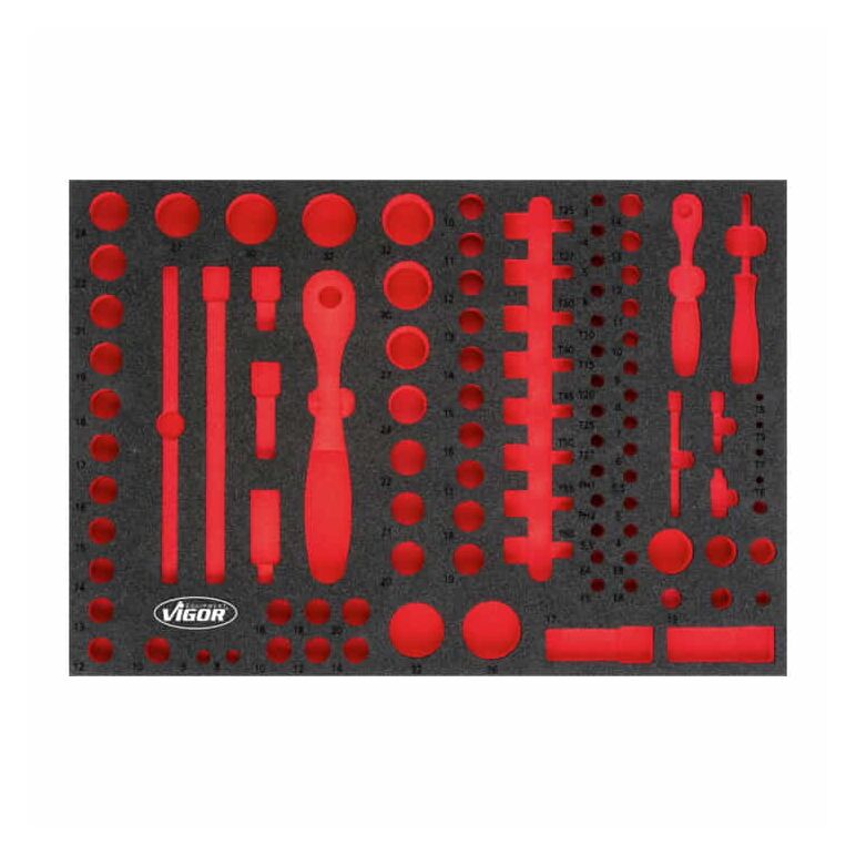 VIGOR 3/3+ Weichschaum-Einlage 6,3 =1/4" 12,5 =1/2" Steckschlüssel-Satz, leer V4514