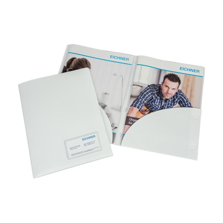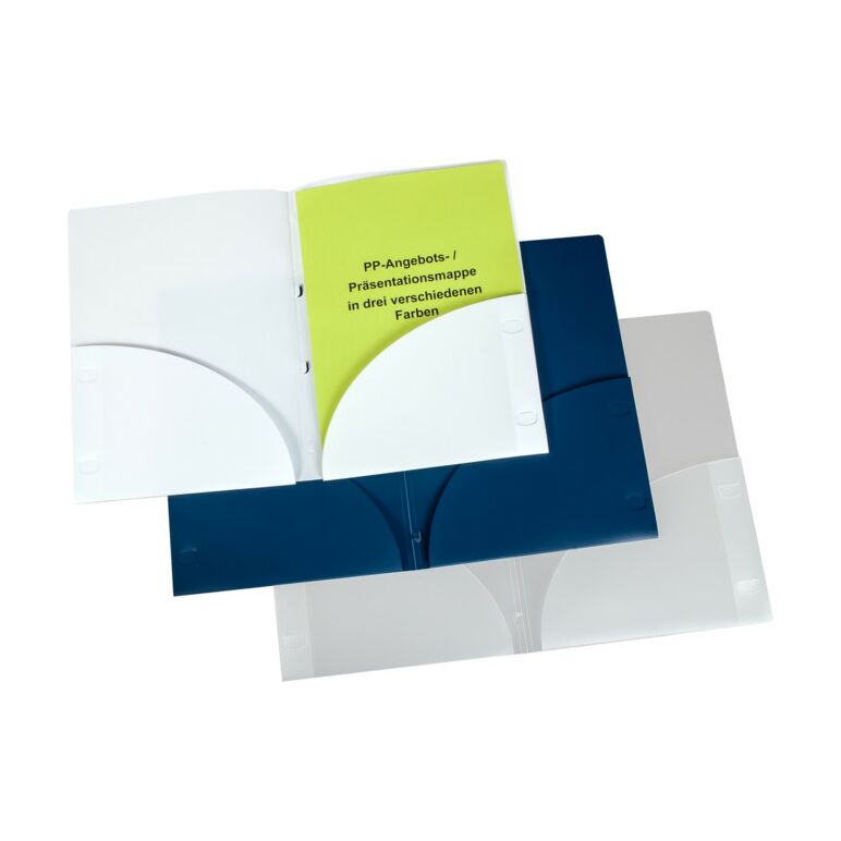 - Präsentationsmappe aus Polypropylen mit 2 Innentaschen und selbstklebender Visitenkartentasche