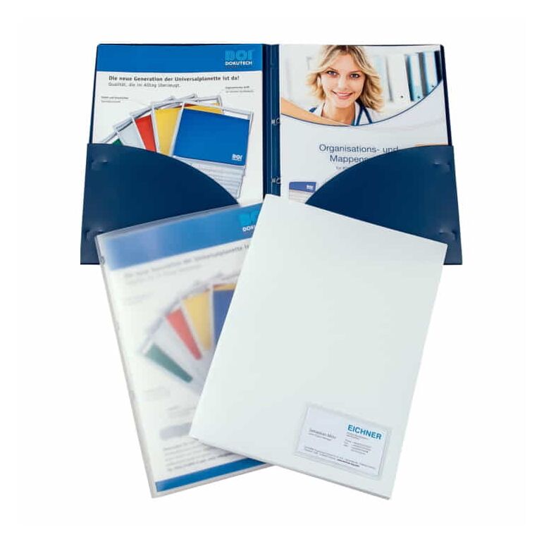 - Präsentationsmappe aus Polypropylen mit 2 Innentaschen und selbstklebender Visitenkartentasche