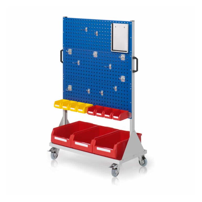 • 1 x Werkzeughaltersortiment 12-teilig, 1 x Formularhalter A4, 1 x Lagersichtkastenhalter 990 mm, 8 x Lagersichtkästen Größe 7, 3 x Lagersichtkästen Größe 2