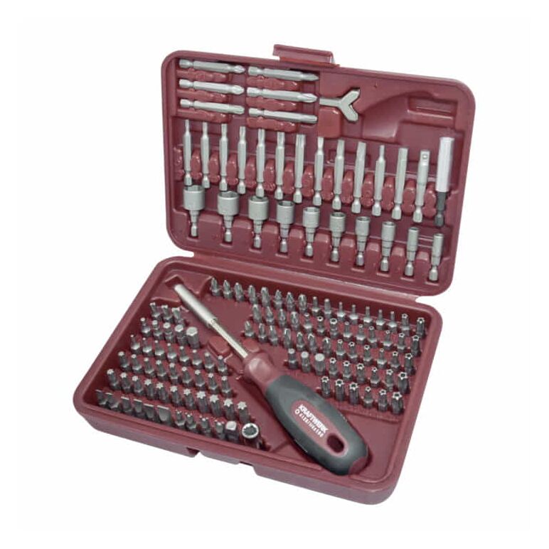 • Dazu gehören neben den praktischen Bit-Adaptern sehr viele gängige und spezielle Bits und auch Sicherheits-Steck-Bits