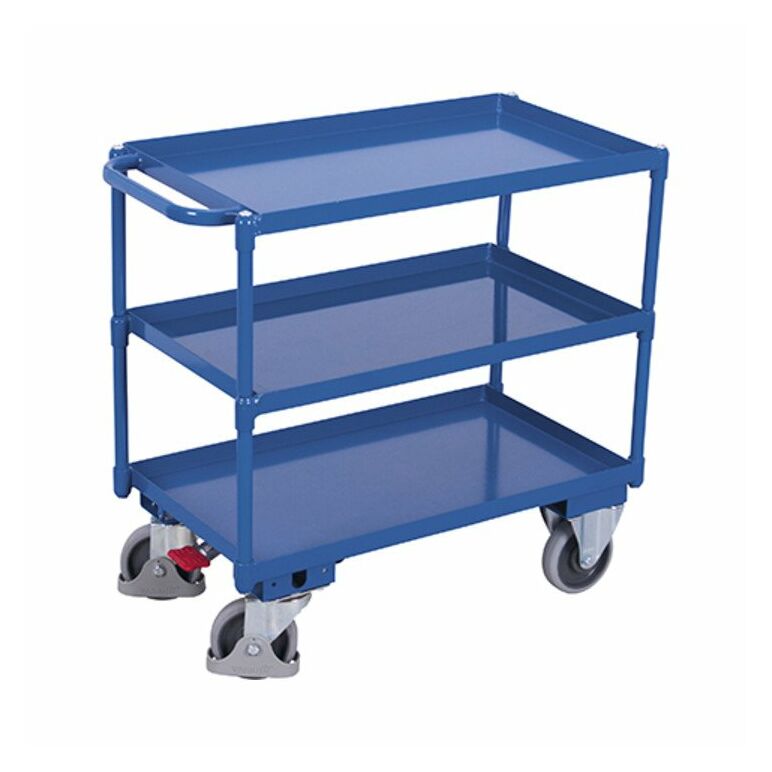 - Radsatz:Bereifung aus thermoplastischem Gummi auf Kunststofffelge mit Präzisions-Rillenkugellager, grau, spurlos, Ø 200 mm, 2 Lenkrollen mit Zentralbremse EasySTOP und 2 Bockrollen, Lenkrollen mit Fußschutz