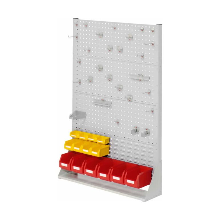 • Diese wahlweise mit ®RasterPlan Lochplatten, Schlitzplatten oder auch eine Kombination von beidem bestückten ®RasterPlan Stellwände, sind vor allem für Arbeitsplätze bestimmt, an denen sowohl Werkzeuge als auch Kleinteile, wie Schrauben und ähnliches, griffbereit sein müssen