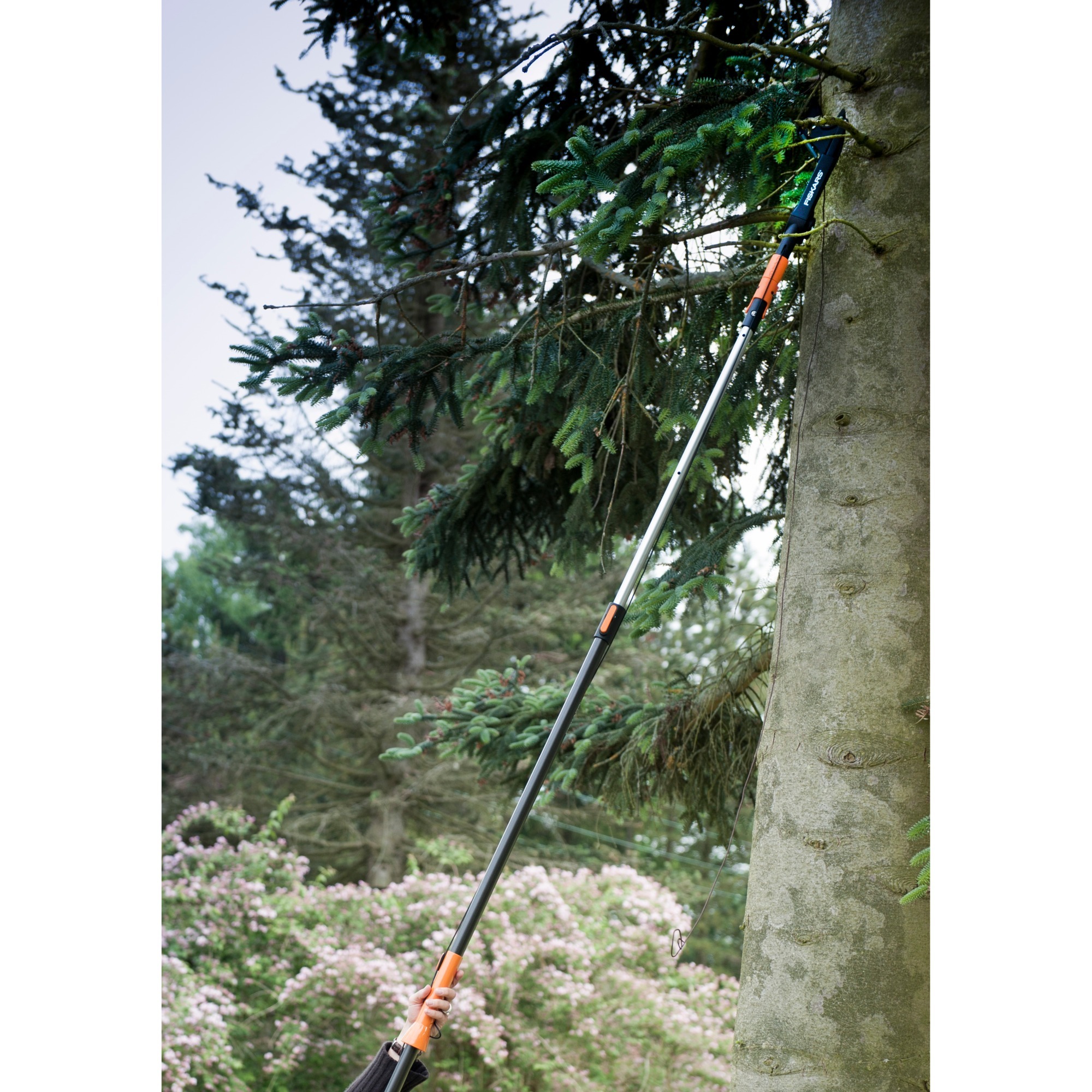 LED-Profi-Handscheinwerfer mit integriertem Akku, verschiedenen Leuchtfunktionen und orangener Farbfilterscheibe