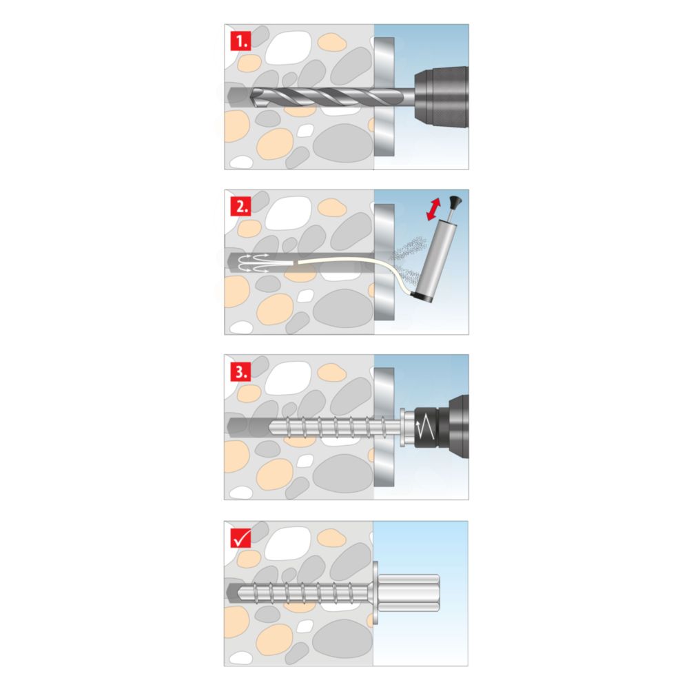 Die TOX Sumo Max 1 KB Schraubanker aus verzinktem Stahl für schwere Lasten eignen sich ideal zum Befestigen von Geländern, Metallkonsolen und Regalsystemen. Die TOX Sumo Max 1 KB Betonschrauben sind für verschiedene Klemmstärken zugelassen und in verschiedenen Größen erhältlich.