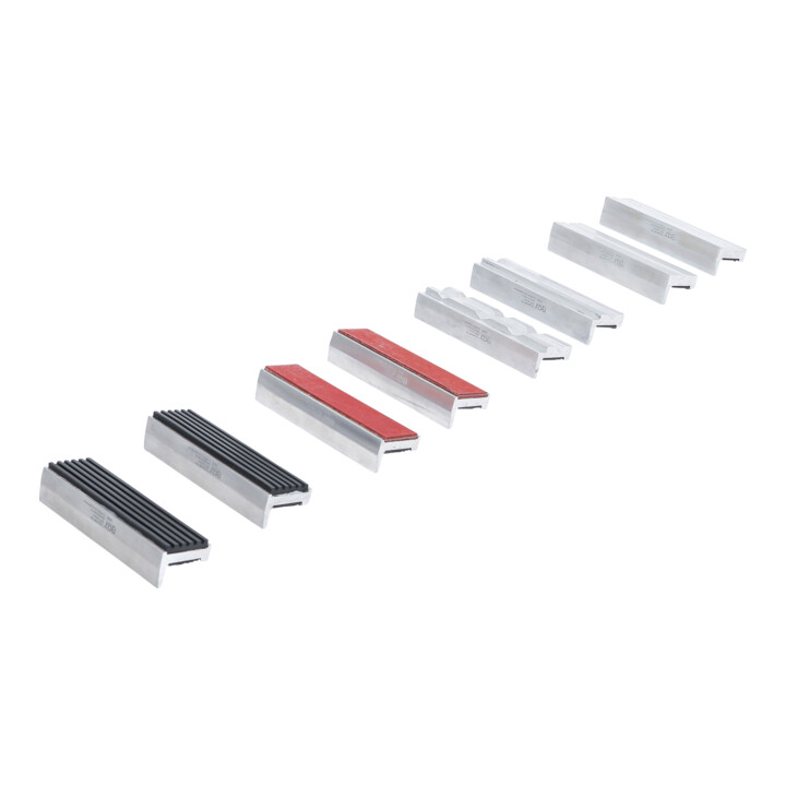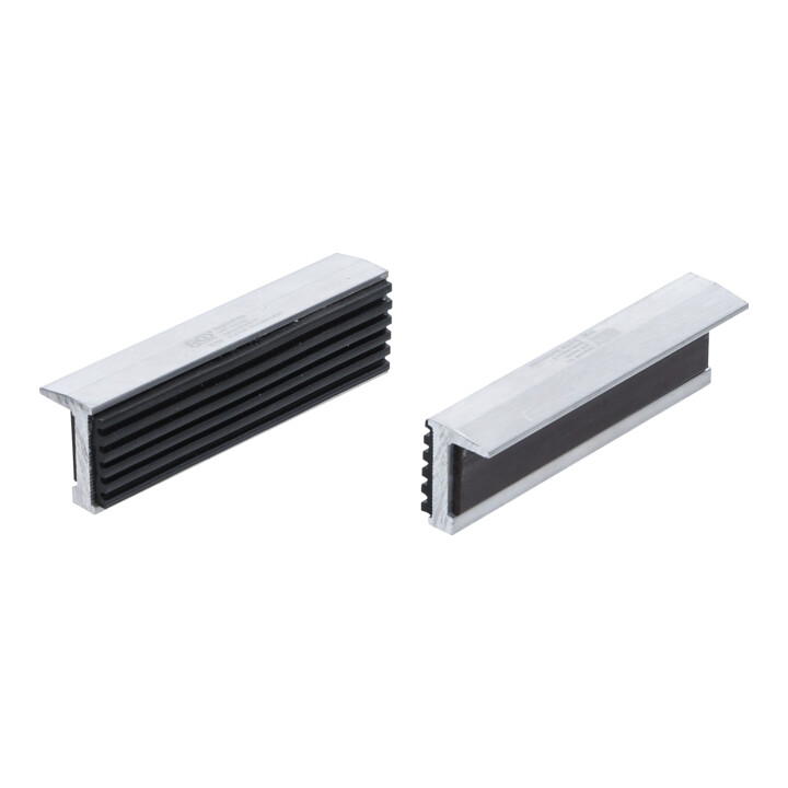 Die Backen sind aus Aluminium in der Härte zwischen Kupfer und Blei. 6 Rillen halten das Werkstück sicher fest.