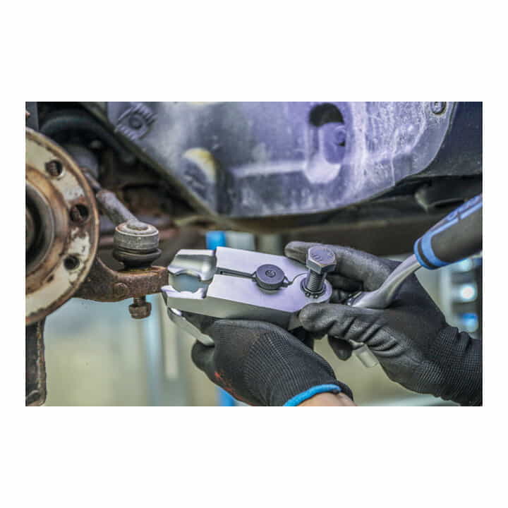 Die breiten Hakenenden der Abzieher No. 1.10/2, /3, /4 und /5 sind mit 8 mm Schlitzen versehen, so dass Scheiben oder Zahnräder auch mit Hilfe von 8 mm Schrauben abgezogen werden können