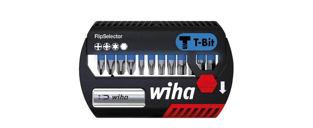 Bisher herrschte beim Bitkauf keine Klarheit, welche Bits für welche Anwendung passend sind. Wiha macht Schluss mit der Komplexität zwischen der verwendeten Maschine, dem Schraubfall und der großen Auswahl an unterschiedlichen Bits. Dank des revolutionären Bitkonzepts von Wiha ist lediglich die Schraubenform ausschlaggebend für die Auswahl des richtigen Bit.So eignet sich der T-Bit ideal für das Verschrauben von T-förmigen Schrauben mit 90° Winkel zwischen Gewinde und Schraubenkopf. Dank der patentierten, verlängerten Torsionszone ist der Bit auch für Impact- und Schlagschrauber geeignet und hat eine 120x höhere Lebensdauer im Vergleich zu den Wiha Standardbits. Zudem sind die farbigen Bits schnell und einfach auffindbar und dank des Farbmantels auch im Dunkeln mit UV-Licht gut zu finden. Somit kann die Anzahl verloren gegangener Bits gesenkt und die Kosten der Neubeschaffung eingespart werden. Die Bits inklusive Bithalter sind übersichtlich und kompakt im FlipSelector verstaut, welcher eine einfache und schnelle Bitentnahme ermöglicht.