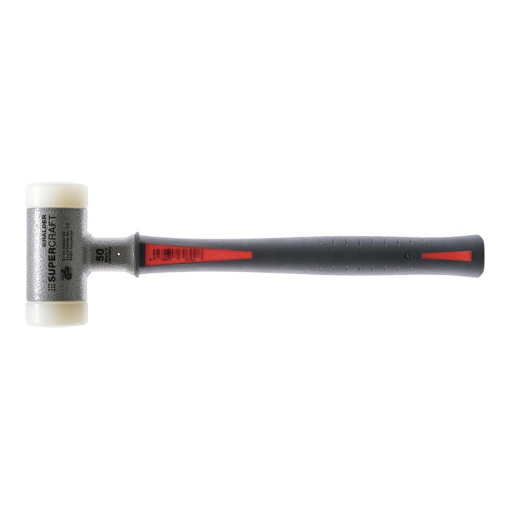 Flächenschonend durch sattes Aufschlagverhalten auf empfindliche Schlagflächen, Austauschbare splitterfreie Köpfe aus bruch- und verschleißfestem Polyamid