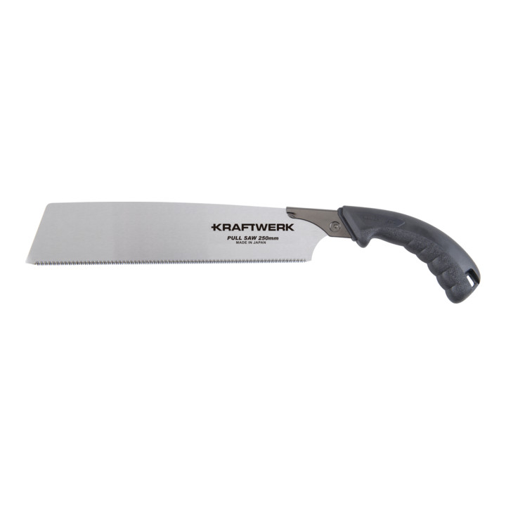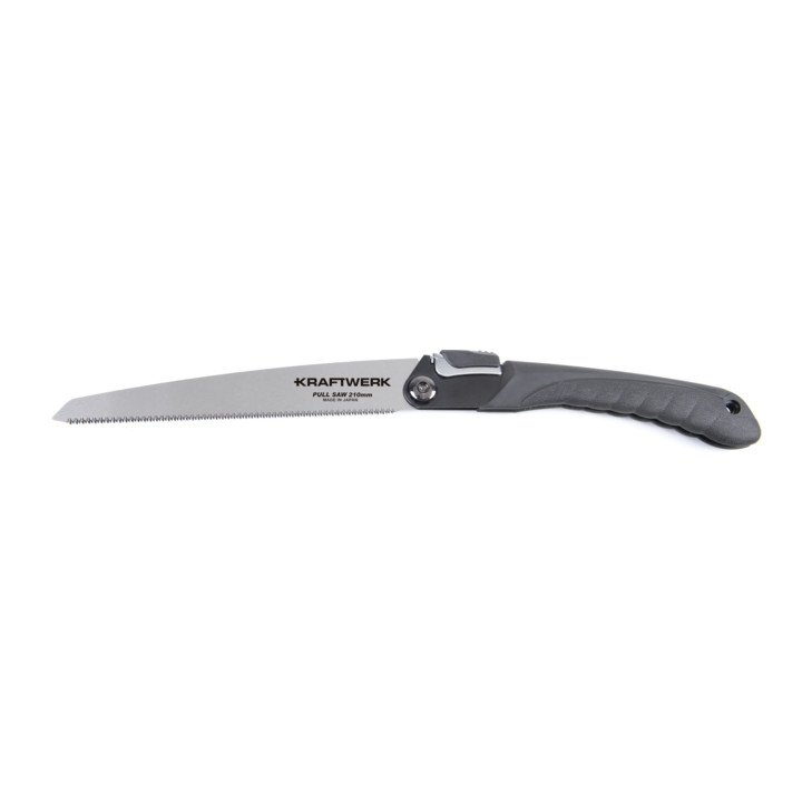 Die Shogun RYOBA Universal Säge besitzt eine Klingenlänge von 240 mm und eine Gesamtlänge von 567 mm. Somit ist ein schnelles und präzises Sägen von zum Beispiel Ästen im Baum problemlos möglich. Des Weiteren ist ein Sägen von Sperrholz und Grünholz kein Problem. Mit der speziellen doppel-tiefen Verzahnung und den Zahnabständen von 1,3 mm ist ein schneller und sauberer Abtrag an dem Werkstück problemlos möglich. Dank der zwei Schneiden mit verschiedenen Sägezahnungen sind sämtliche Sägearbeiten abgedeckt. Durch die Feststellschraube der Säge ist ein sicherer Halt des Sägeblattes gewährleistet. Das aus Impuls gehärtete Sägeblatt ist besonders Widerstandsfähig und hält bis zu drei mal länger als herkömmlicher Stahl. Die auswechselbare Klinge bestätigt das gut durchdachte Konzept von Shogun, somit muss man im verschlissenen Zustand diese nur auswechseln anstatt eine neue Säge zu kaufen. Mit dem Herstellungsland Japan wird eine lange Tradition von Sägen verbunden, die Qualität bestätigt dies.